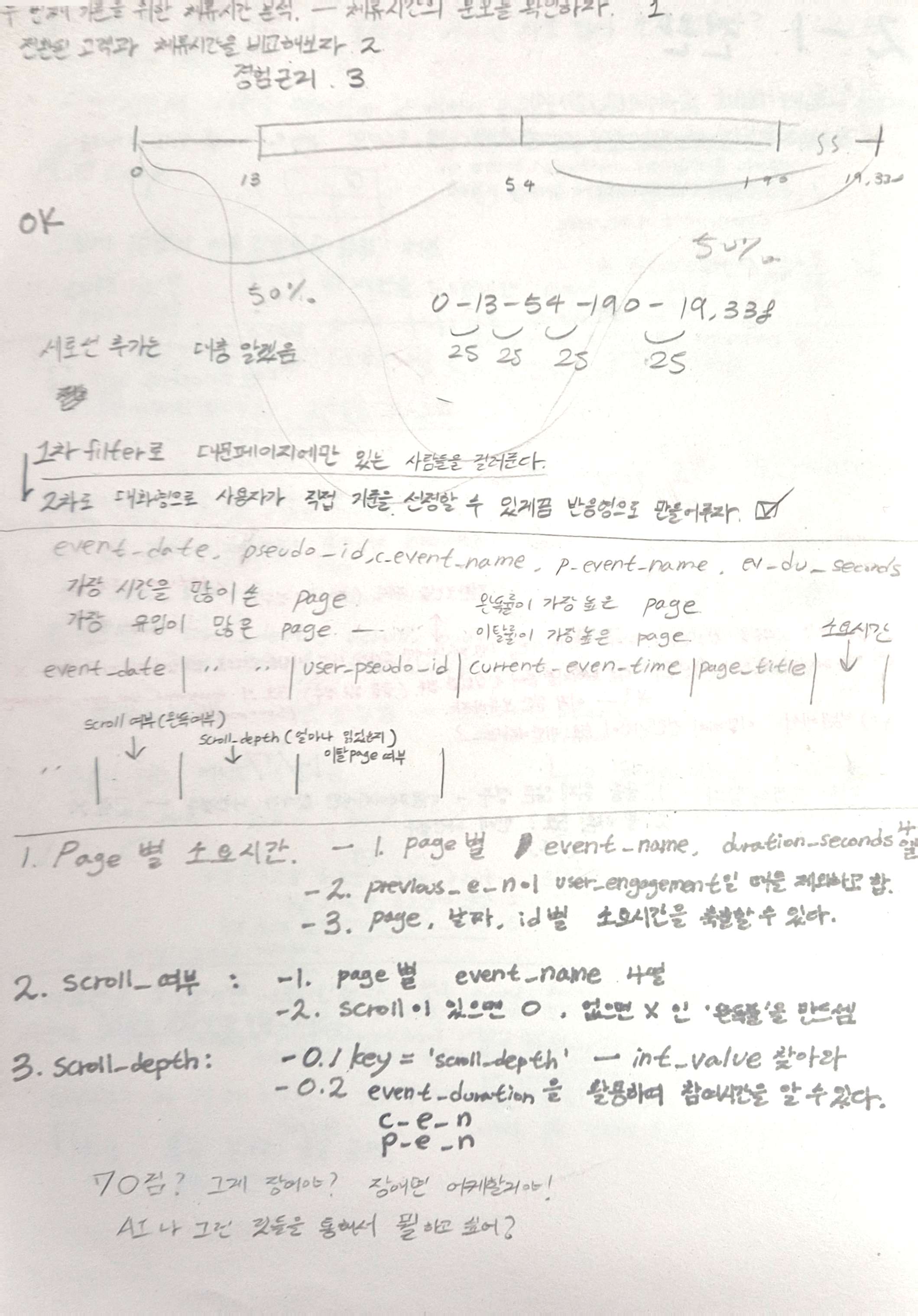 여기서 드디어 조금 쓸만한 고객정의가 나옵니다. 대문페이지에만 있다가 나간 사람들은 애초에 고객이 아니다. 물론 해당 유저들의 행동을 분석하여 어쩌다가 나갔는지 또 다른 인사이트를 제공할 수 있겠지만, 의뢰인이 그런 것 보다는 잔류한 사람들을 더 궁금해할 것 같아 과감하게 생략하기로 했습니다.